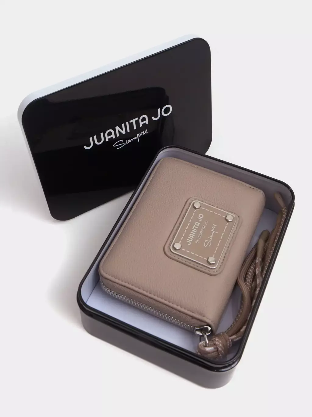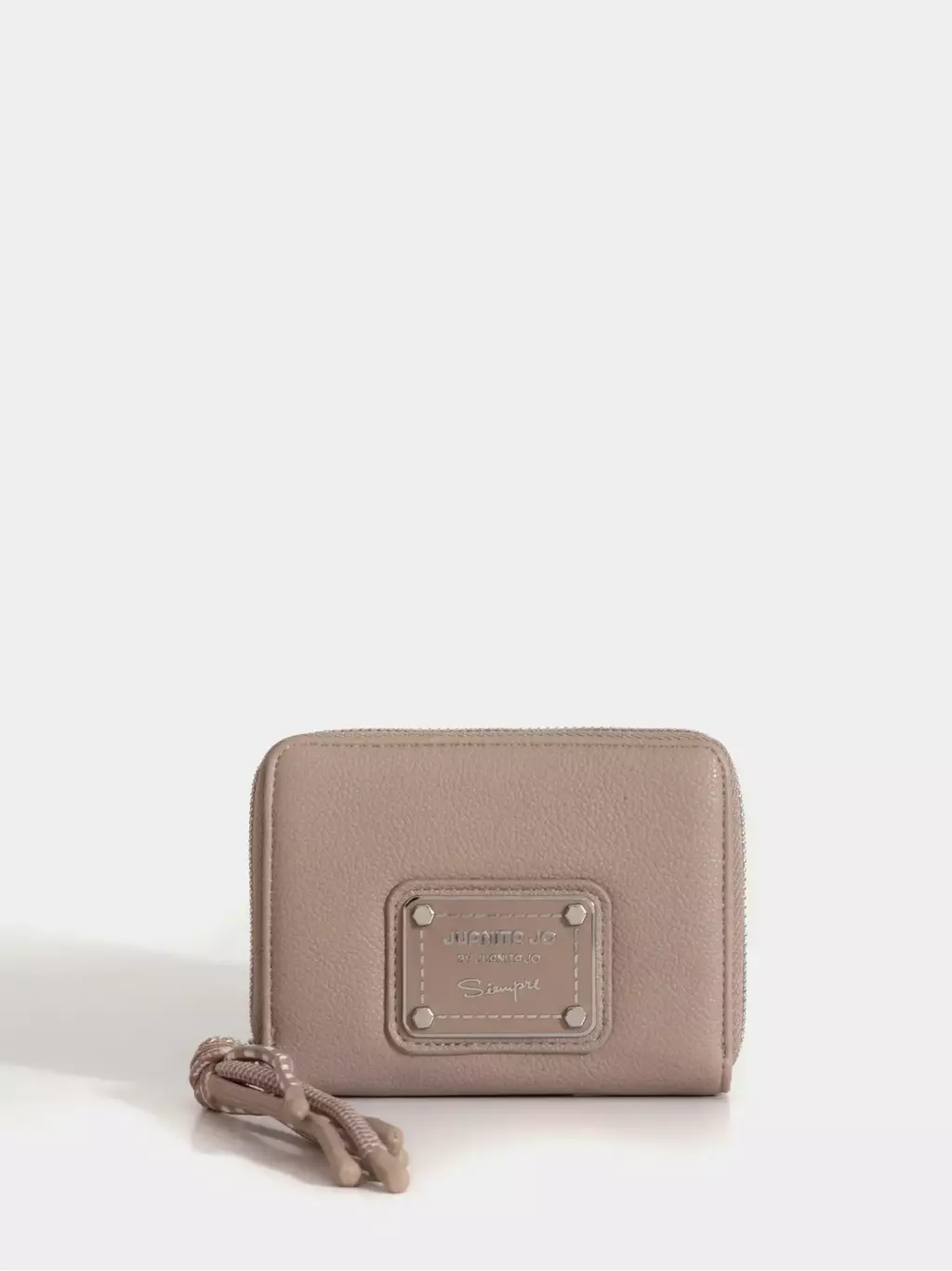 ¡No te puede faltar esta billetera en tu cartera! Cuenta con espacio para 6 tarjetas,compartimento para monedas y espacio para que puedas guardar los billetes doblados. El tiracierre con cordón y la chapa metálica de Juanita Jo le suman un toque cool. Está confeccionado en material alternativo al cuero.