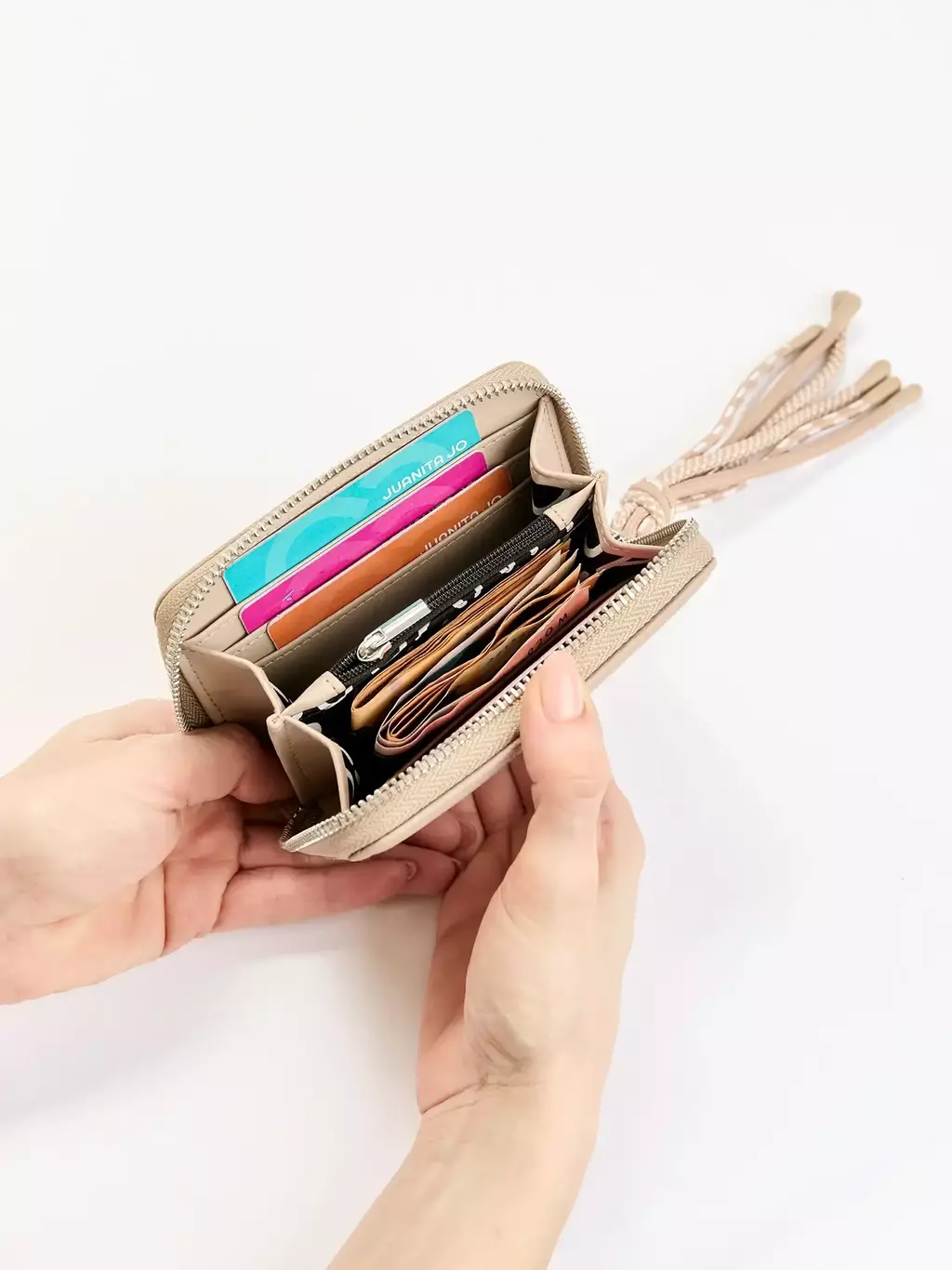 •Espacio para 6 tarjetas, billetes y monedas