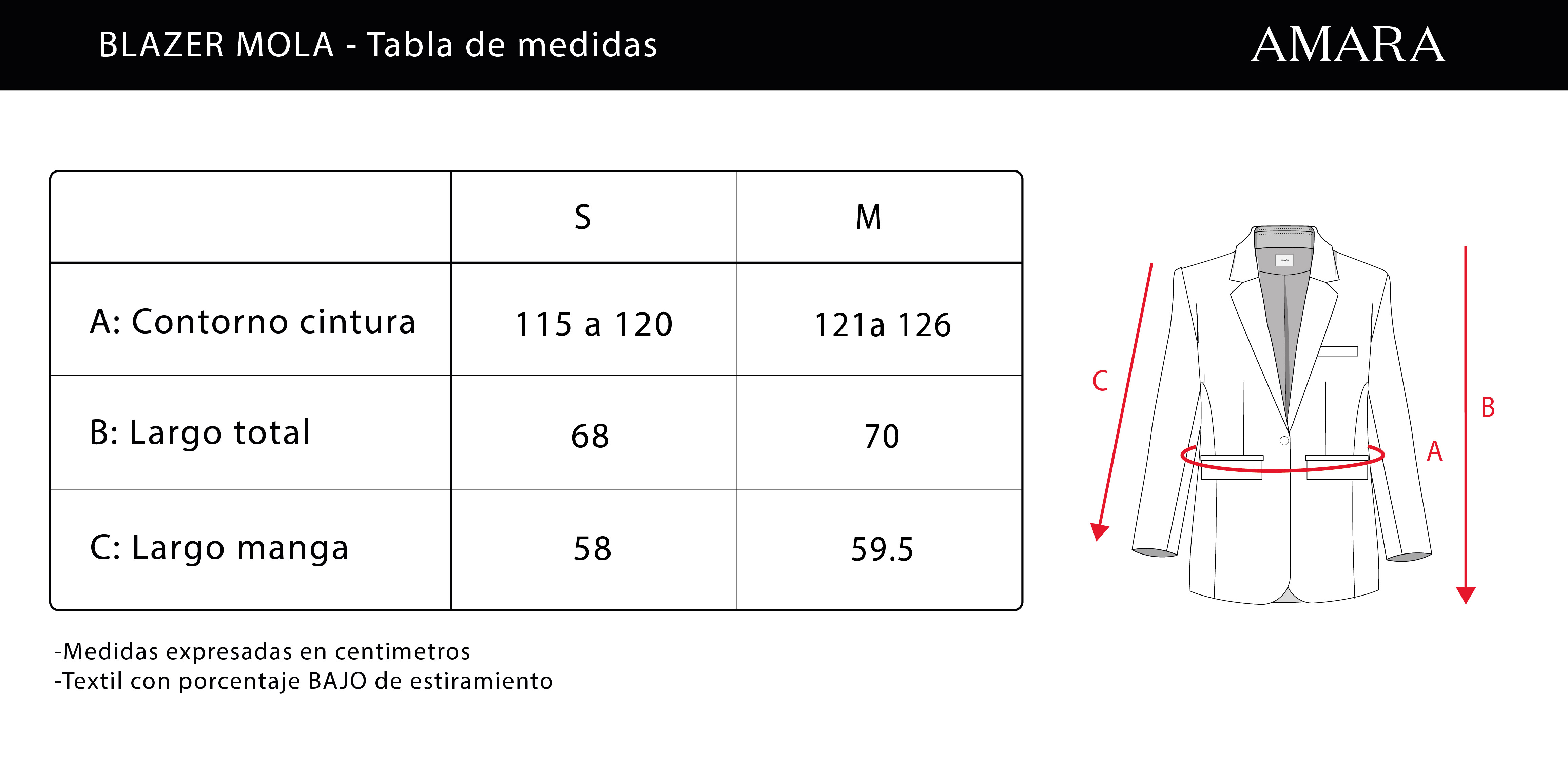 Diseño holgado con cintura levemente ceñida. Lleva un tablón interno en la forrería de su espalda. para poder moverse con mayor comodidad.
