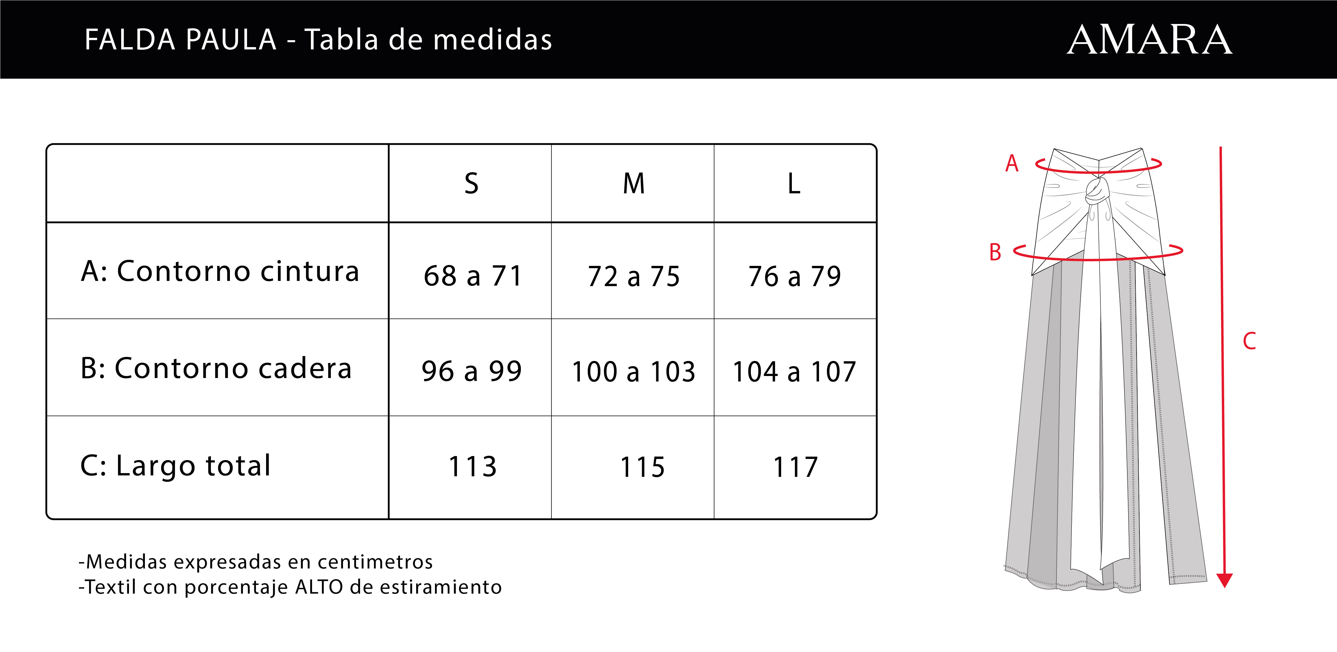 Diseñado para un calce ceñido en la zona de la cadera, con mayor fluidez y volúmen en la zona inferior de la falda.