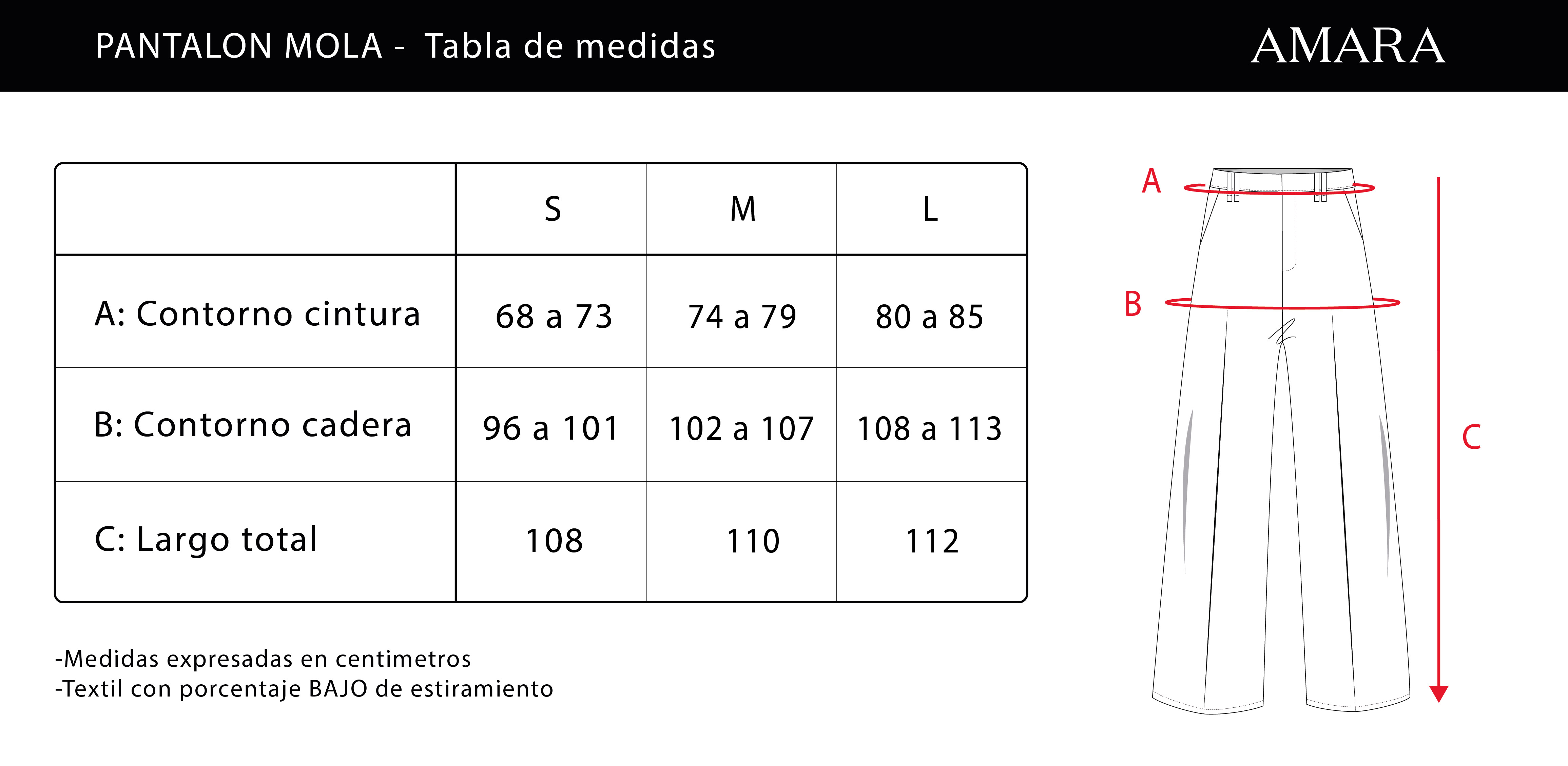 Diseñado para un calce ceñido en cintura con mayor amplitud en pierna y botamanga.