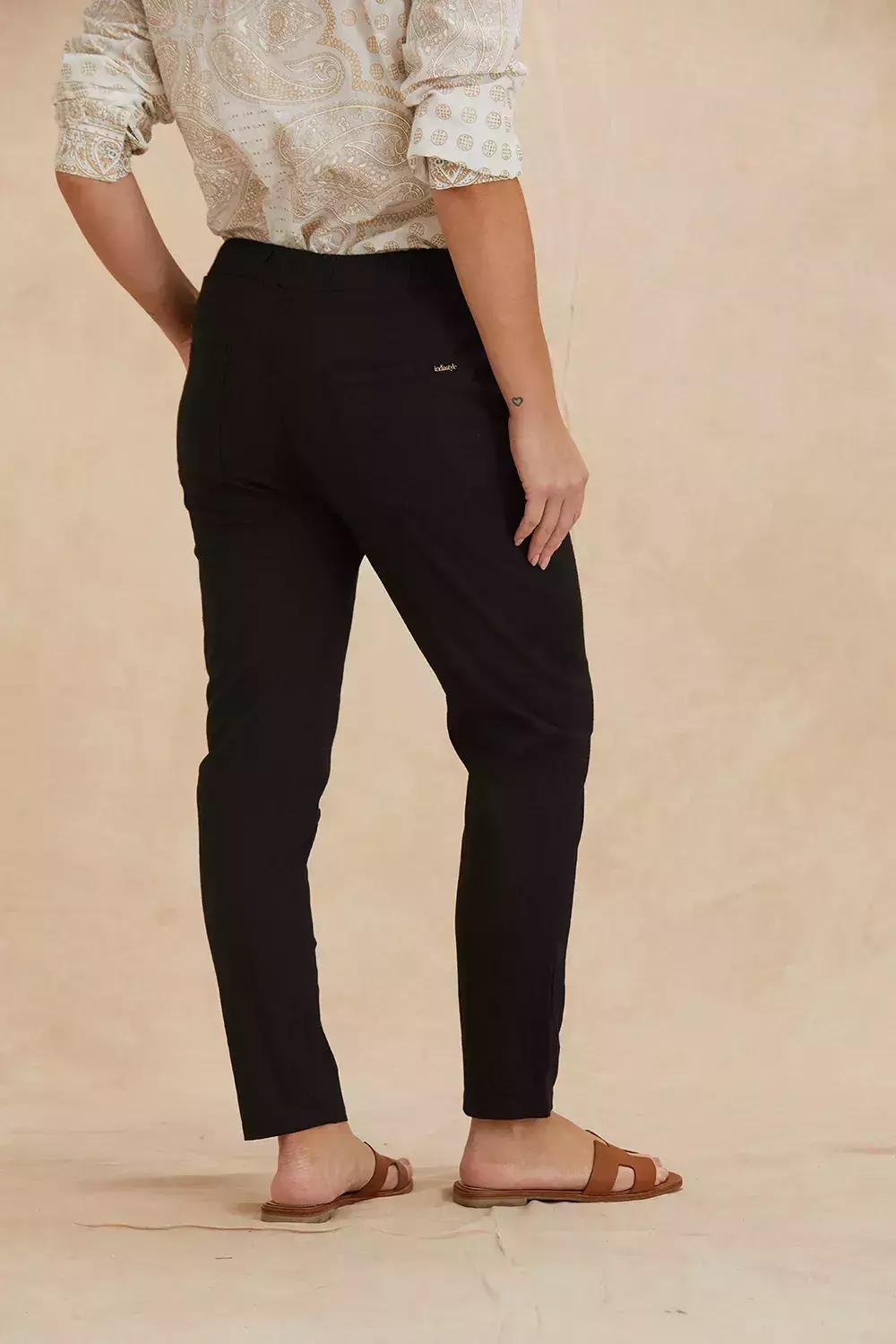 Pantalón confeccionado en algodón. De estilo babucha con elástico en cintura y cordón decorativo ajustable, de largo crop y bolsillos tanto en la parte delantera como trasera. Lo podés combinar con la CAMISA LAVERTON.