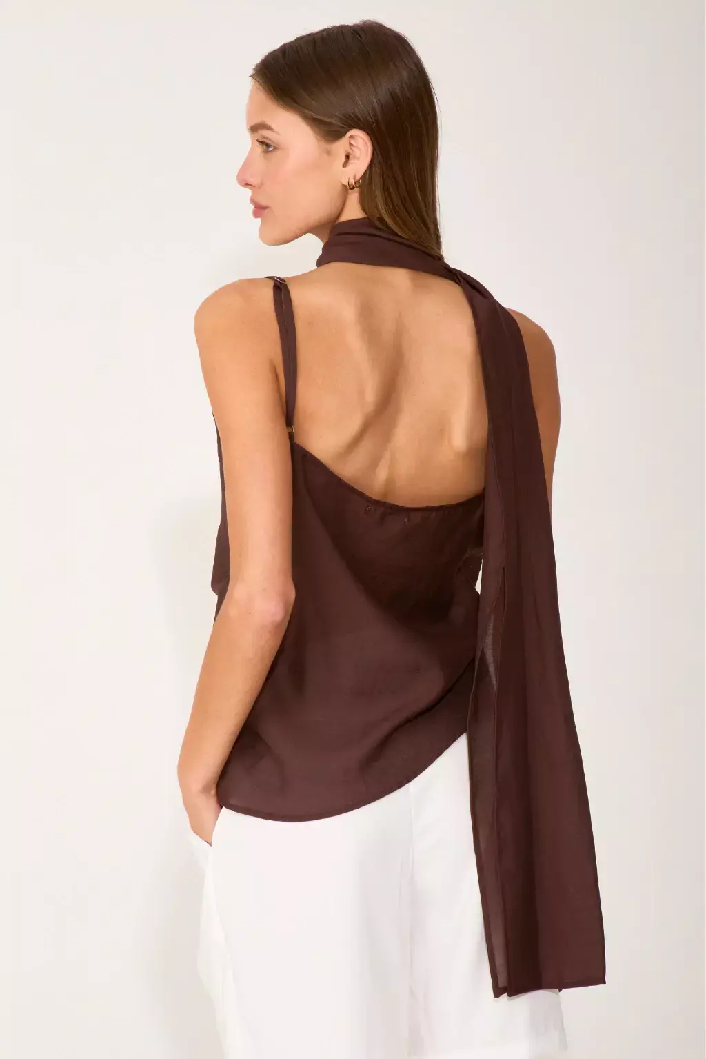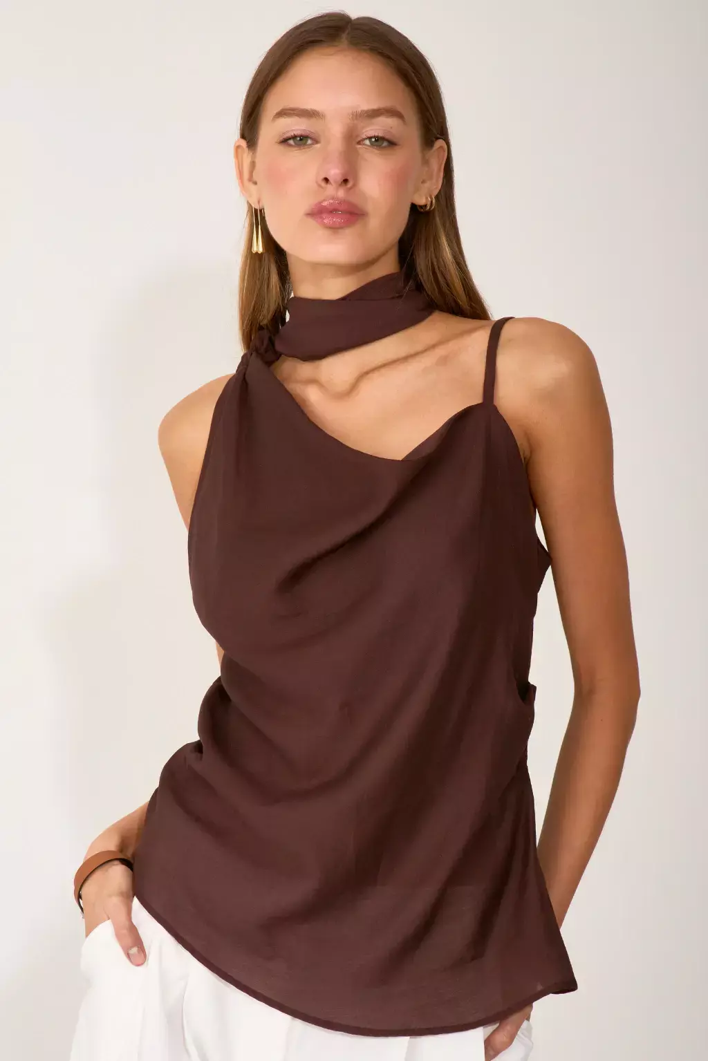 Moderno y canchero. Con breteles regulables y bufanda incorporada que suma un detalle único.