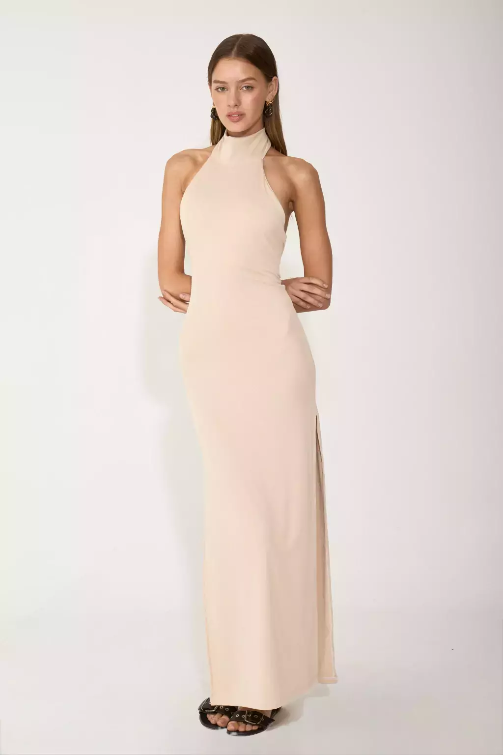 Moderno y fresco. De microfibra, con polera y lazo largo, tajo lateral y espalda descubierta. Cómodo y con actitud.