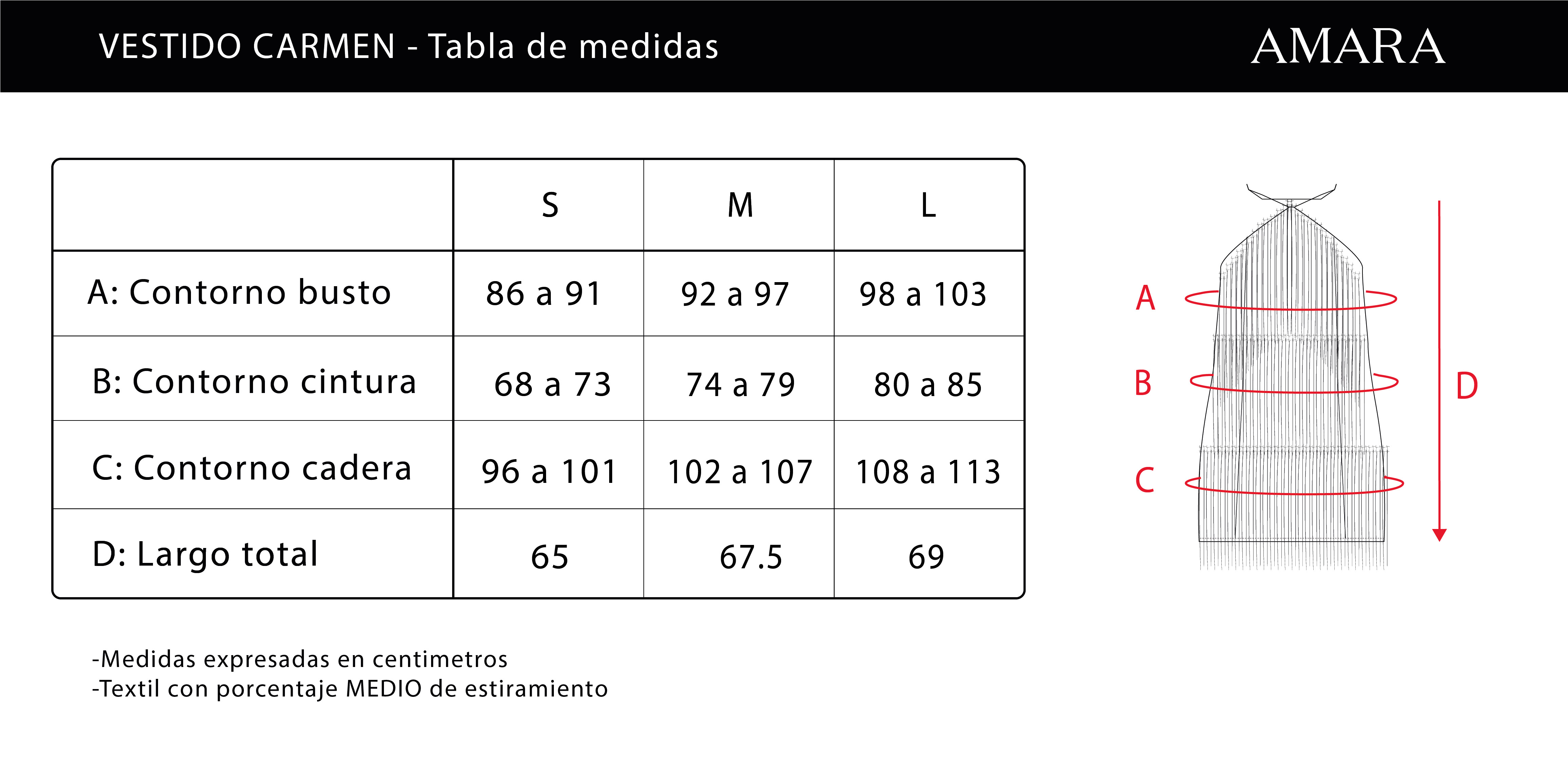 Vestido corto con escote halter y breteles finos abotonable detrás del cuello. Por debajo lleva una forrería opaca ceñida al cuerpo y por encima genera transparencias y movimiento gracias a los flecos. Se accede mediante cierre invisible en centro de espalda