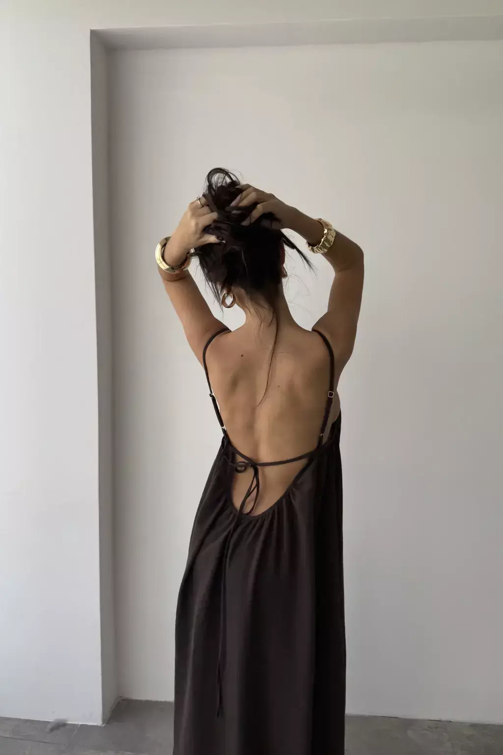 Fresco y cómodo. De lino, con frunce en escote y sisa, breteles regulables y espalda descubierta.