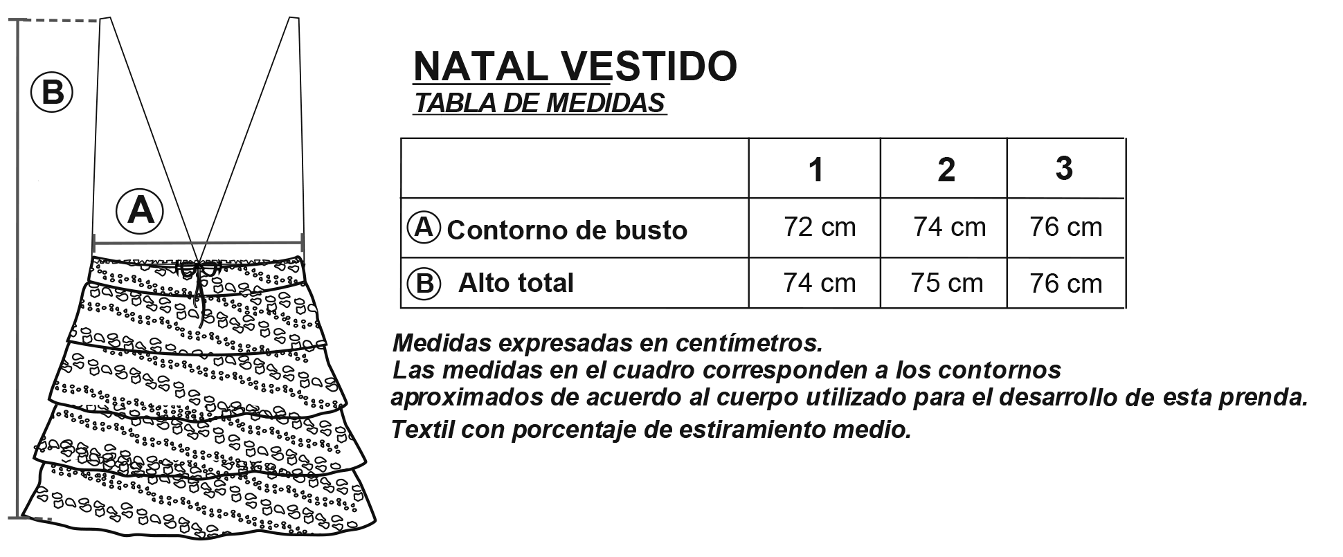 Vestido corto confeccionado en punto calado tipo guipiur, con escote en V y lazo para ajustar bajo escote. Presenta breteles anchos y volados escalonados. Íntegramente forrado. Tejido con elasticidad media.