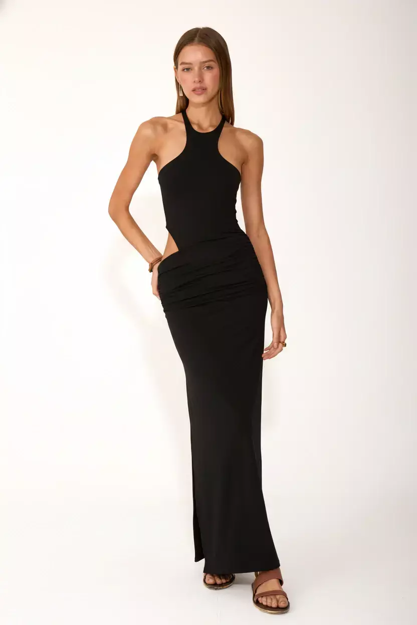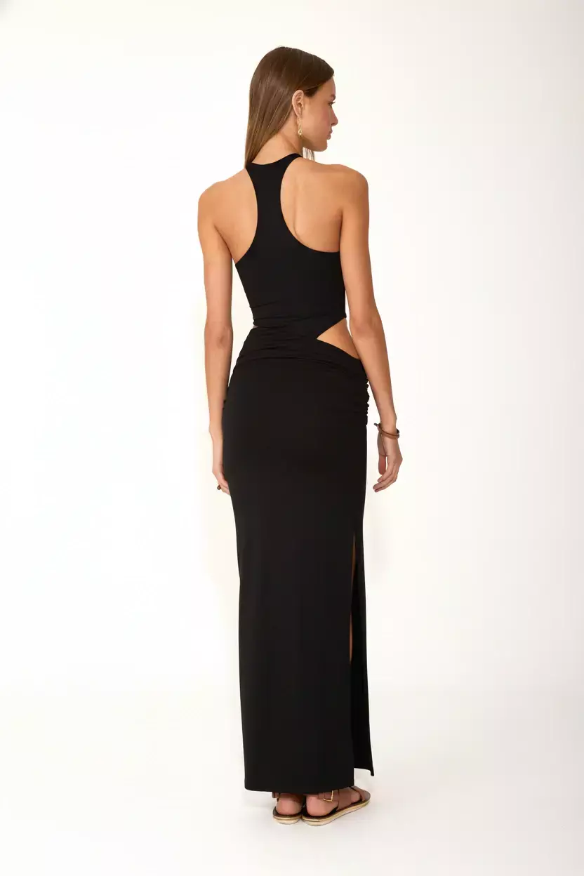 Con estilo y comodidad. De lycra, con body interno, falda irregular, tajo lateral y frunces sutiles.